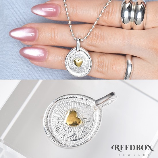 실버 925 골든 하트 선샤인 고리형 원형 펜던트