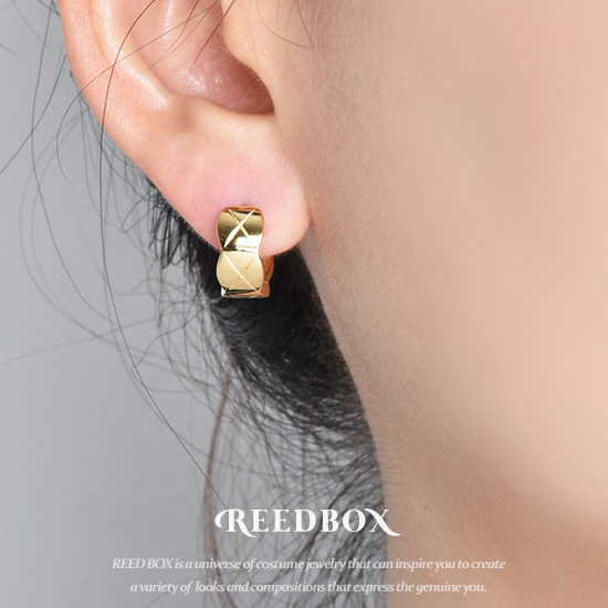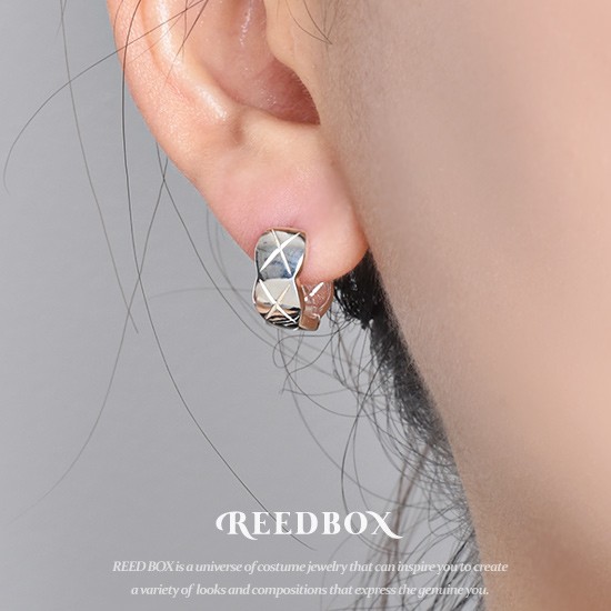 실버 925 다이아 퀼팅 볼드 쿠션 원터치 링 귀걸이