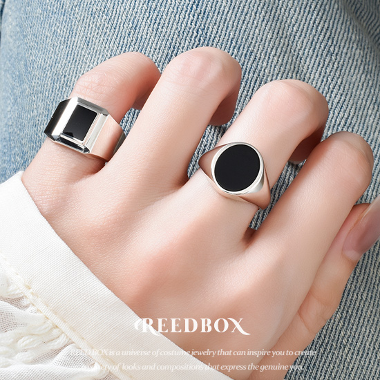 실버 925 미드나잇 블랙 스퀘어 오닉스 애끼링 원석 은반지