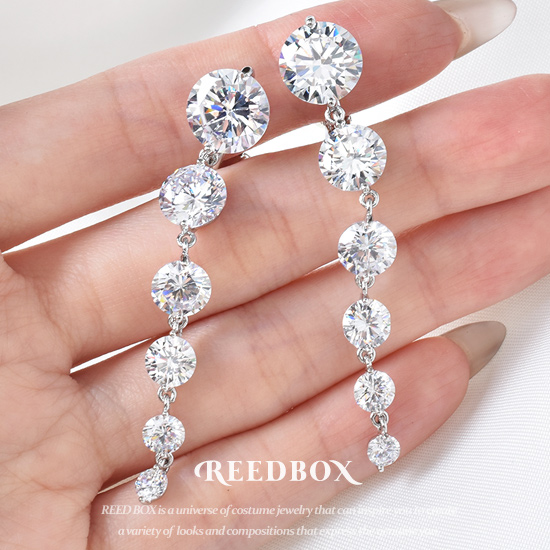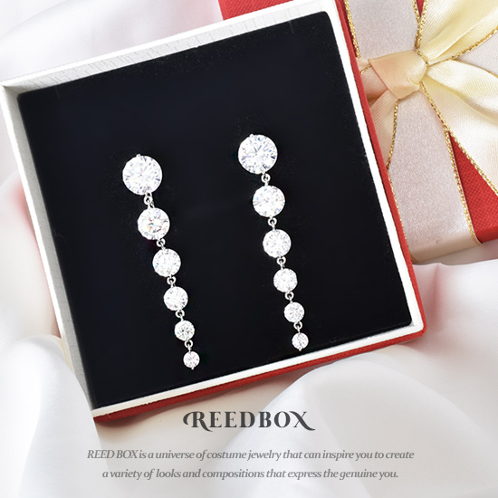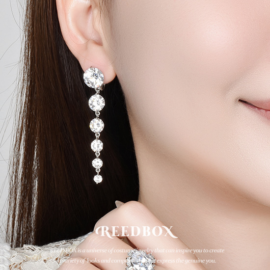 [선물포장] 웨딩 피로연 드레스 다이아컷 솔리테어 6단 드롭 귀걸이 귀찌