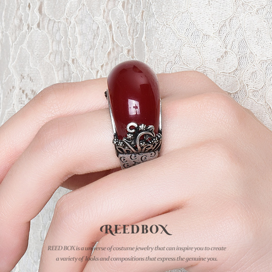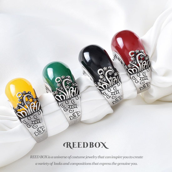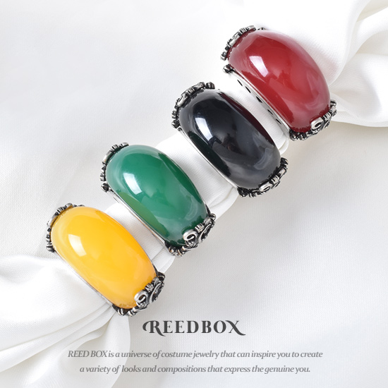[선물포장] 고마루 꽃길 천연 원석 자마노 오닉스 호박석 비취옥 반지 한복 혼주반지