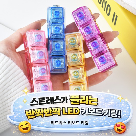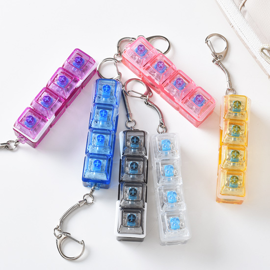 레인보우 4구 키보드 키링 LED 스트레스해소 키캡 키홀더 열쇠고리