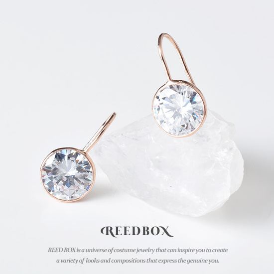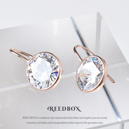 실버 925 로즈 라운드 큐빅 드롭 이어링
