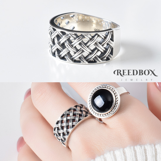 실버 925 빈티지 우븐 네트 와이드 반지