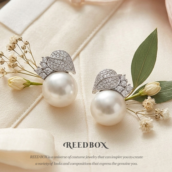 [선물포장] 혼주 웨딩 탄생화 리프 진주 귀걸이 귀찌