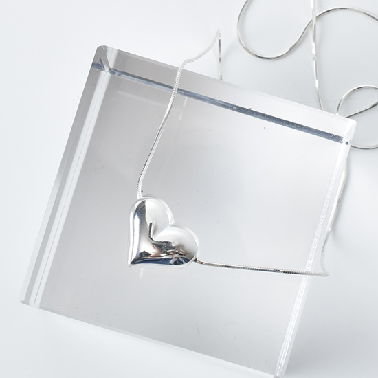 실버925 사랑스러운 볼륨 하트 실키 뱀줄 목걸이