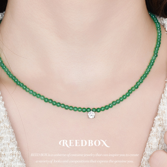 [선물포장] 실버 925 루미엘 3부 그린오닉스 자마노 핵진주 진주 목걸이