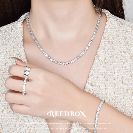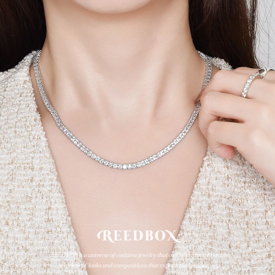 [선물포장] 프롱세팅 3mm AAA+급 큐빅지르코니아 스퀘어컷 테니스 목걸이