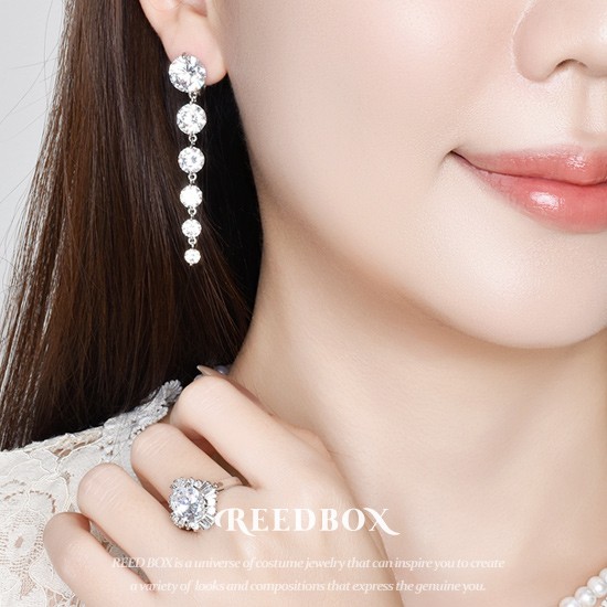 [선물포장] 웨딩 피로연 드레스 다이아컷 솔리테어 6단 드롭 귀걸이 귀찌