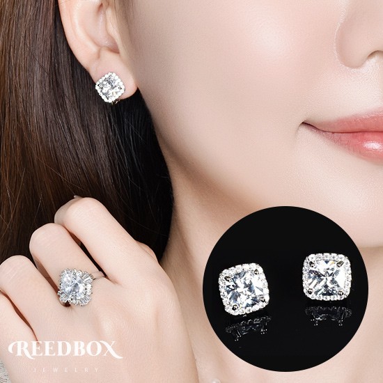 [선물포장] 혼주 웨딩 면접 스퀘어 다이아컷 큐빅지르코니아 귀걸이 귀찌