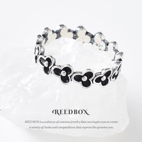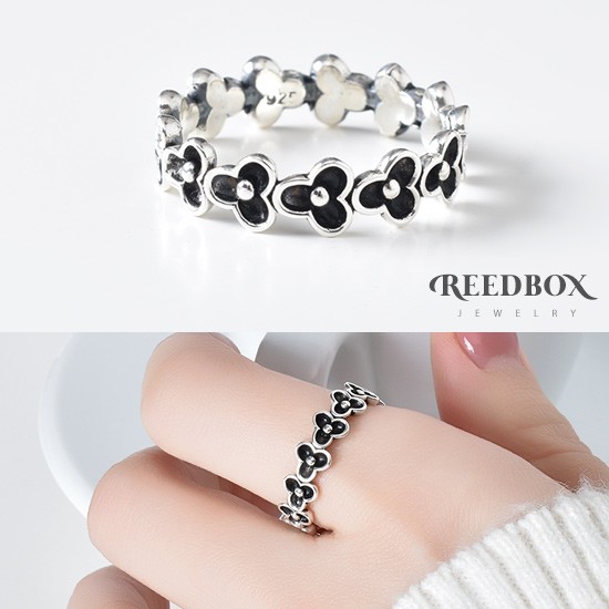 실버 925 블랙 쁘띠 클로버 블라썸 반지